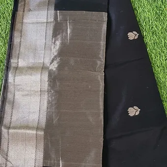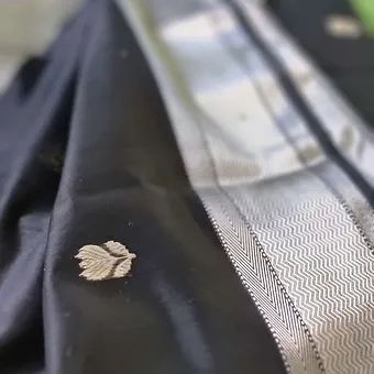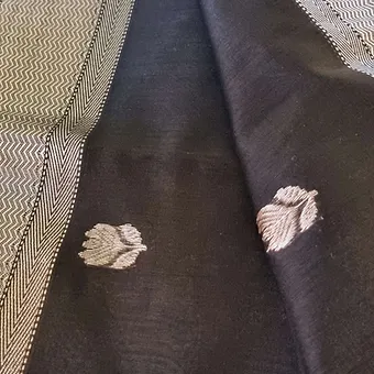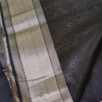 Step into sophistication with this Black & Silver Handloom Cotton Silk Maheshwari Saree. Handwoven with precision, this saree reflects the rich weaving tradition of Maheshwar. The deep black base paired with a shimmering silver zari border creates a striking contrast, while the subtle woven motifs add depth and elegance.