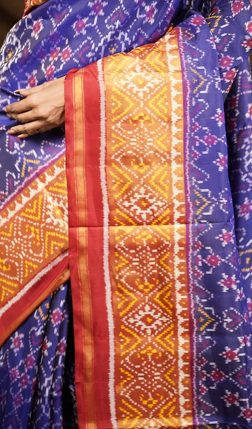 - Motifs: Traditional Patola patterns including geometric and cultural motifs