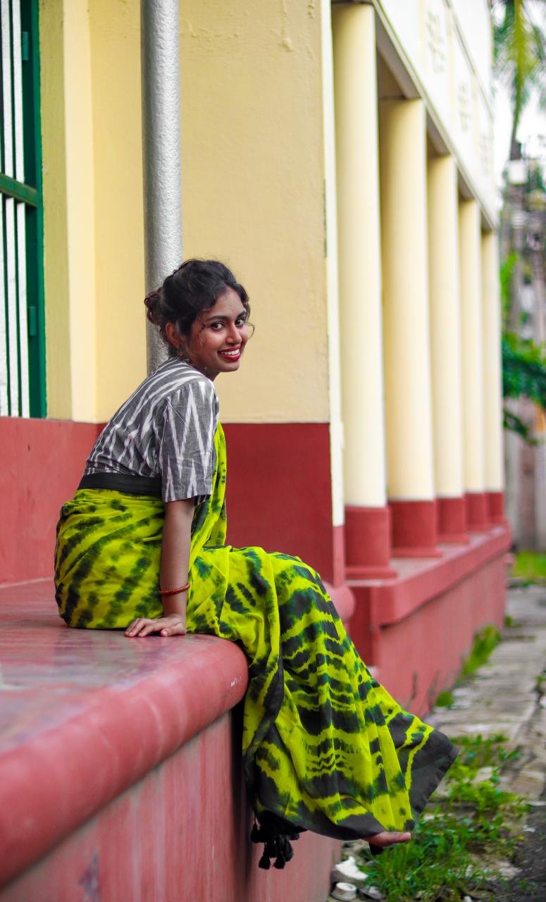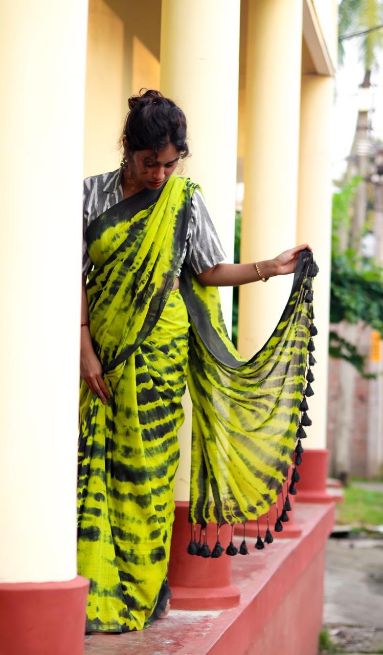 Green Mul Cotton Tie and Dye Saree