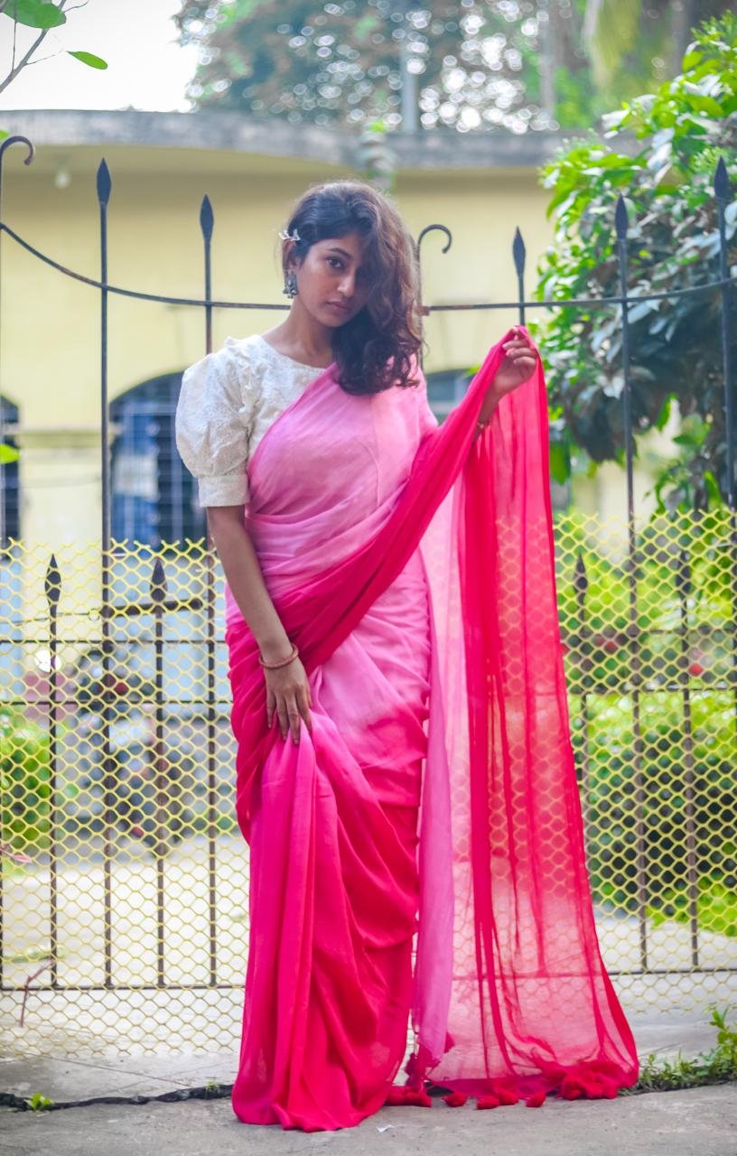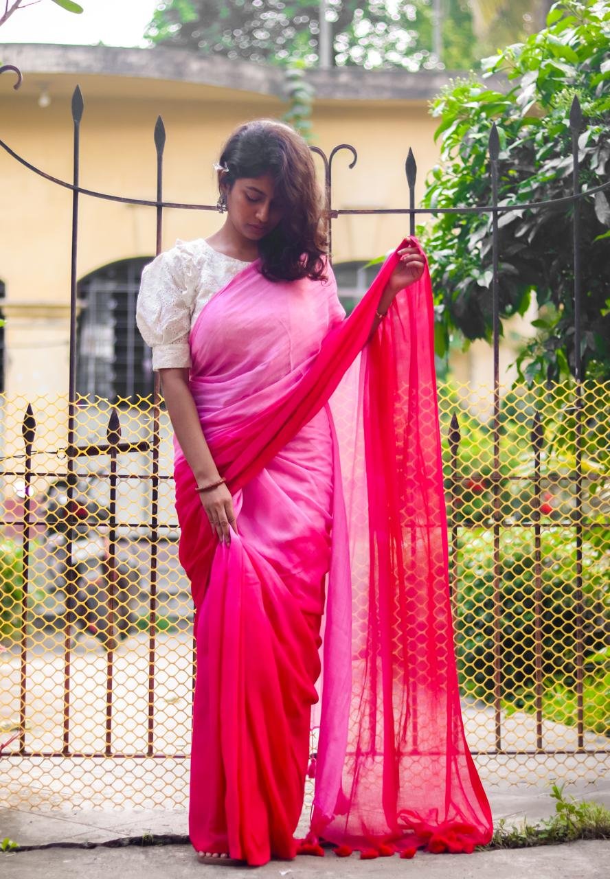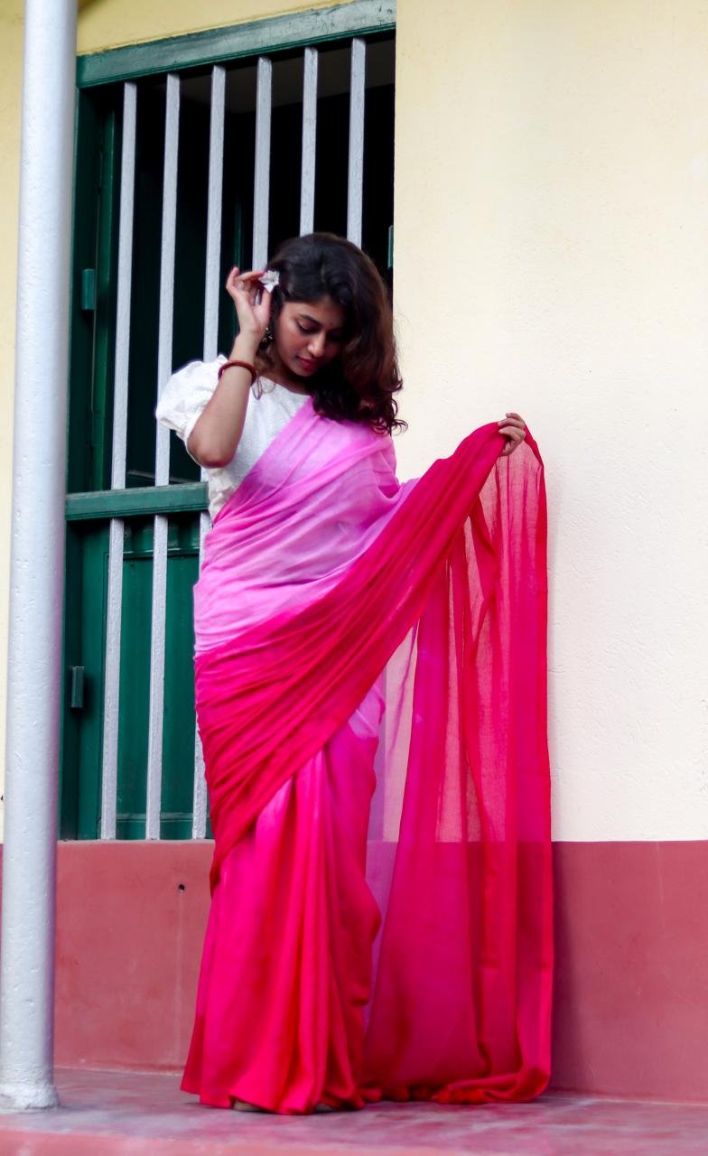 Gulabi Handwoven Mul Cotton Saree with Two Shades