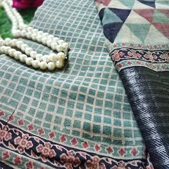 At Shashikala Sarees, we honor India’s textile heritage by bringing together traditional crafts in modern collections. This Handloom Tussar Silk Ajrakh Mangalagiri Saree is not just an outfit – it’s a story of artisans, culture, and sustainability.