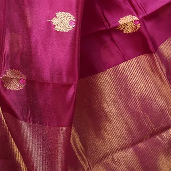 Magenta Handloom Pure Silk Chanderi Saree with Golden Zari