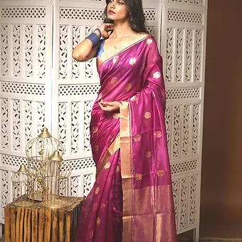 Bold magenta silk saree with rich golden detailing
